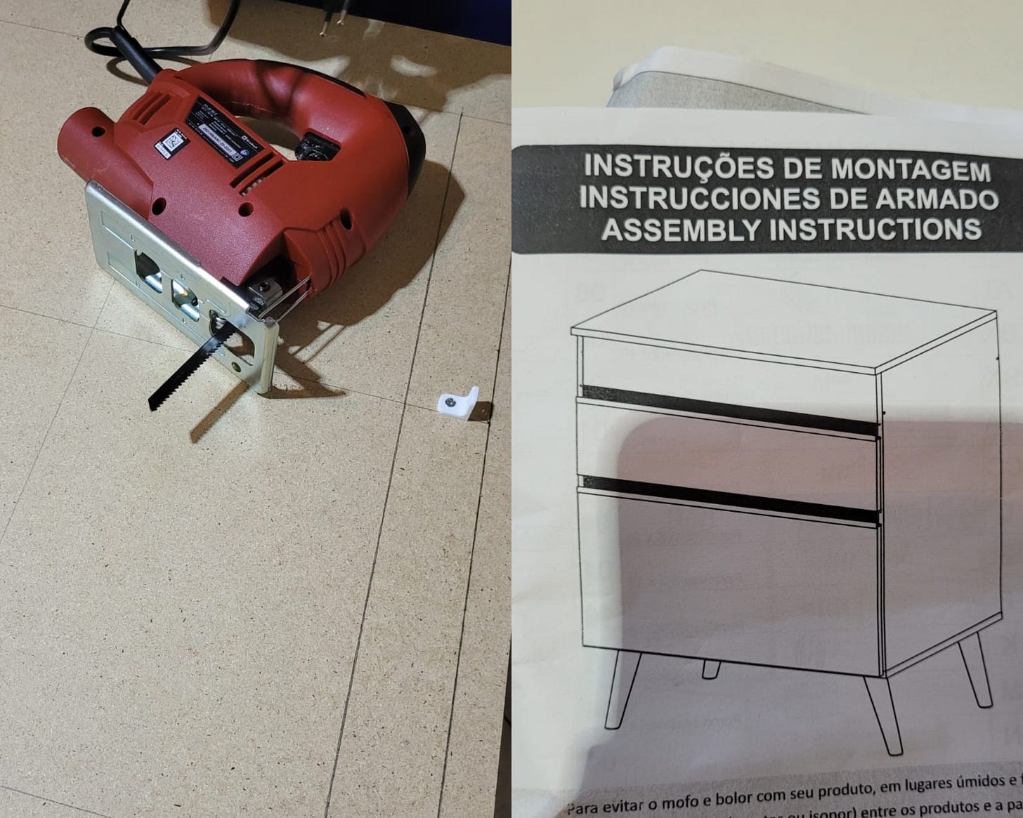 Montar um móvel, cortar madeira - compramos um móvel para o cooktop aqui de casa e resolvemos montar. Estamos ficando muito bons nisso, inclusive. Só que esse móvel em específico tinha um desafio a mais: o tampo não vinha cortado para encaixar o cooktop. A gente tinha duas opções: 1) chamar alguém pra cortar; 2) comprar uma tico-tico e cortar madeira. Foi uma aventura bem divertida e cheia de pó. Deu certo! (mas o gelo tava no freezer e o ziploc separado na cozinha 🙃). Passamos o dia inteiro focados nisso e ainda tornamos a cozinha mais bonita :) Então, a dica é: troque móveis, mude-os de lugar, recrie a configuração do seu quarto, ou da sala.